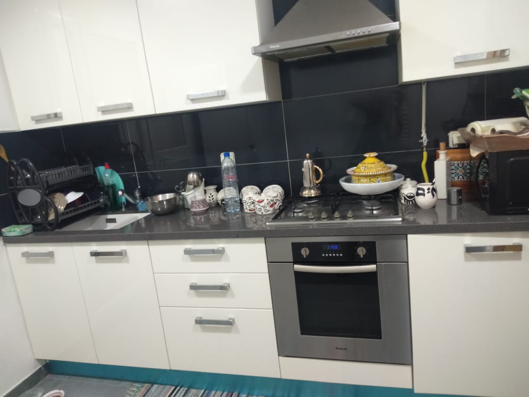 AL AQARIA TRADE vous propose à la vente un appartement S+1 de haut standing aux Jardins de Carthage, lumineux et situé dans une résidence gardée en R+2. Il se compose d’un salon, une cuisine moderne équipée, une chambre à coucher avec dressing et une salle d’eau. Cet appartement est climatisé et équipé d’un chauffage central et dispose d’une place de parking.